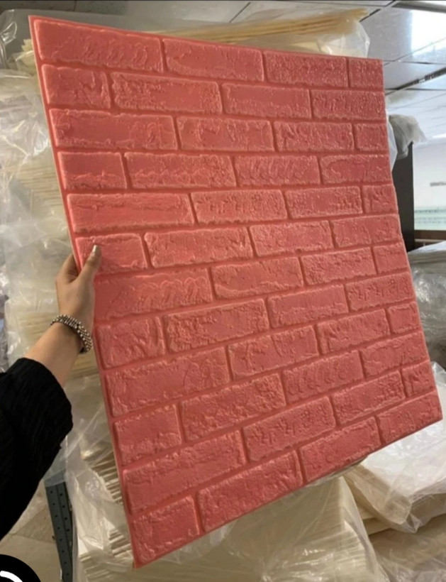 دیوار پوش فومی پشت چسب دار طرح آجر بهمنی رنگ صورتی، ارسال از تهران